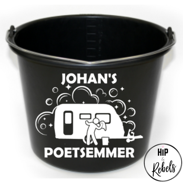 Er is keuze tussen twee soorten emmers. Een bouwemmer of een gekleurde emmer. De bouwemmers zijn zwart en 12 liter en de gekleurde emmers zijn verkrijgbaar in roze, groen en blauw (10 liter).
