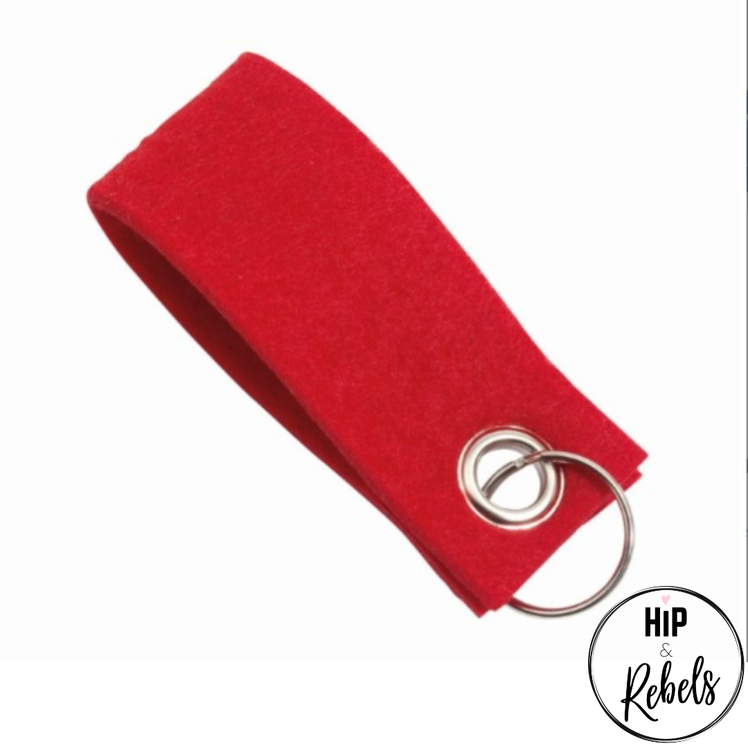 Vilten sleutelhanger - Juf strak lettertype 2 kanten bedrukt