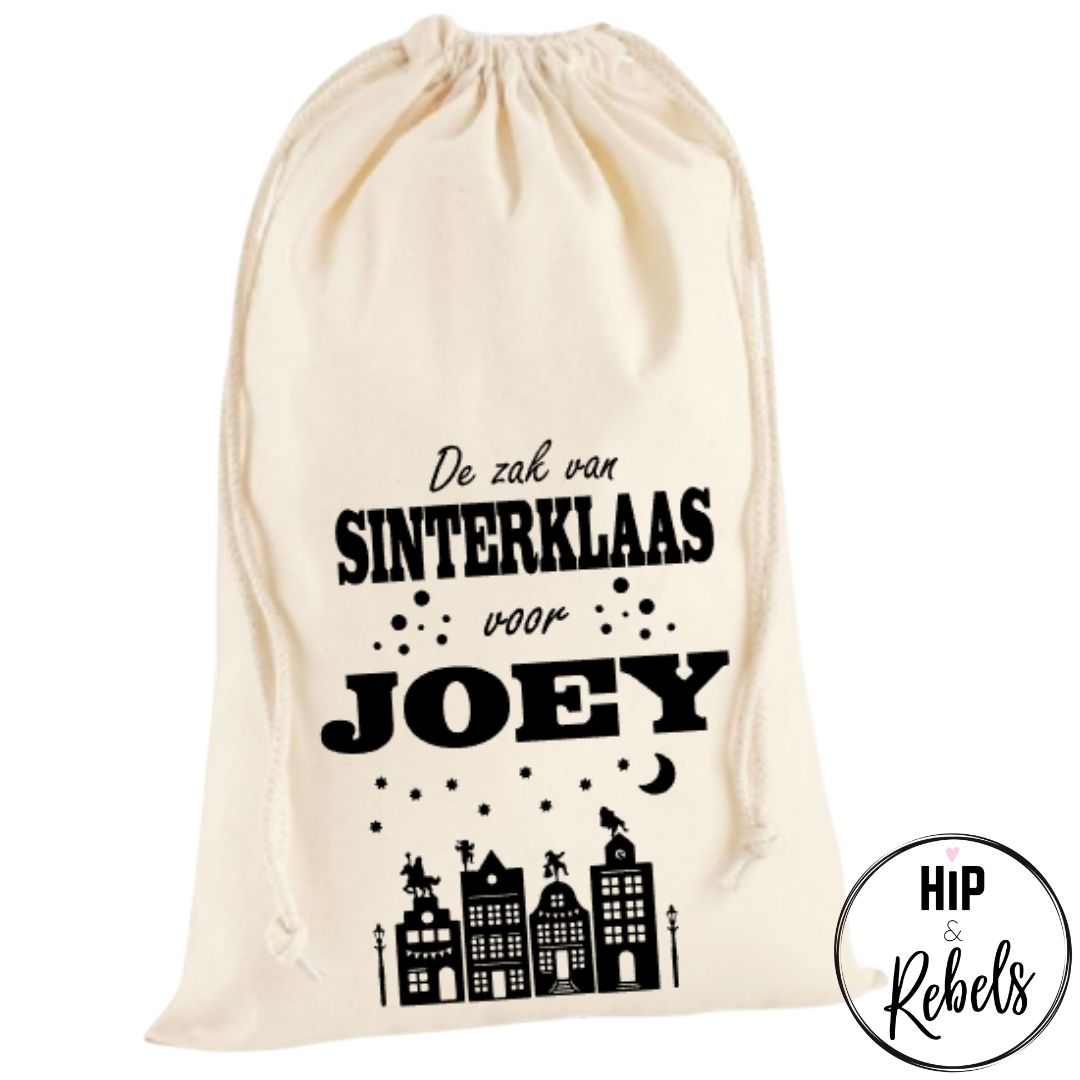 Katoenen zak - De zak van Sinterklaas voor (met eigen naam)